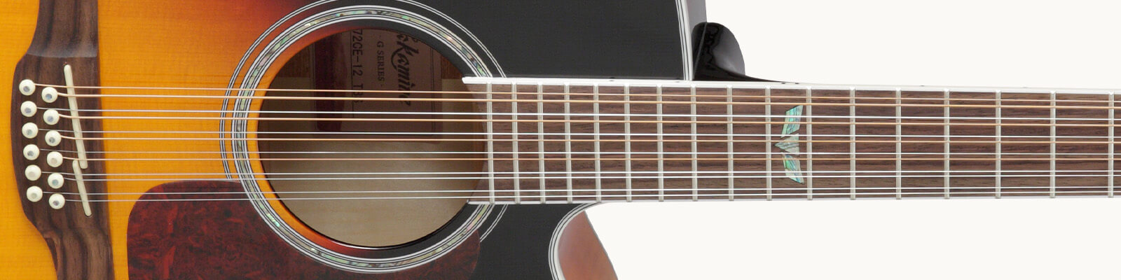 Takamine 12-saitige Gitarren sind von Werk aus mit D'Addario Light Gauge Phosphor Bronze Saiten (.010-.047) ausgestattet. Alle Gitarren sind so konstruiert, dass sie einer bestimmten Saitenspannung am Hals standhalten. Mit den Standard-Saitenstärken in der Werkseinstellung übt der Satz eine Kraft von 250,86 Pfund auf den Hals aus, was er problemlos aushalten kann. Wenn du jedoch versuchen würdest, zwei Sätze Phosphor-Bronze-6-Saiten-Sätze (.012-.053) aufzuziehen, würde sich die Spannung auf den Hals erheblich verändern: 321,08 Pfund bei Standardstimmung! Das sind 28% mehr Spannung ... aua, das wird dem Hals und dem Steg nicht guttun!